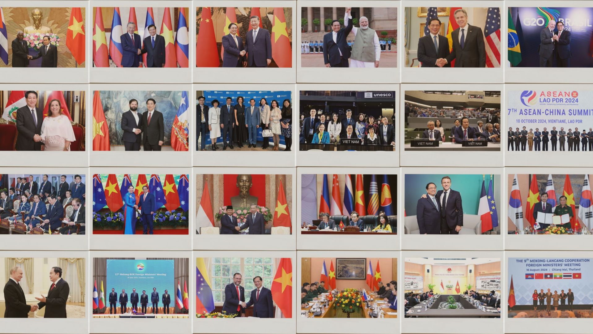 O ano de 2024 foi um ano de implementação de amplas atividades de relações exteriores no Vietnã com muitos sócios em vários fóruns e mecanismos multilaterais importantes, incluindo 60 eventos de los liederes, 21 de los cuales son visitas a los países e participação em conferências multilaterais e 25 recepções de delegações de líderes mundiais.
