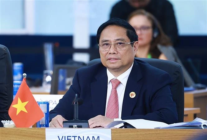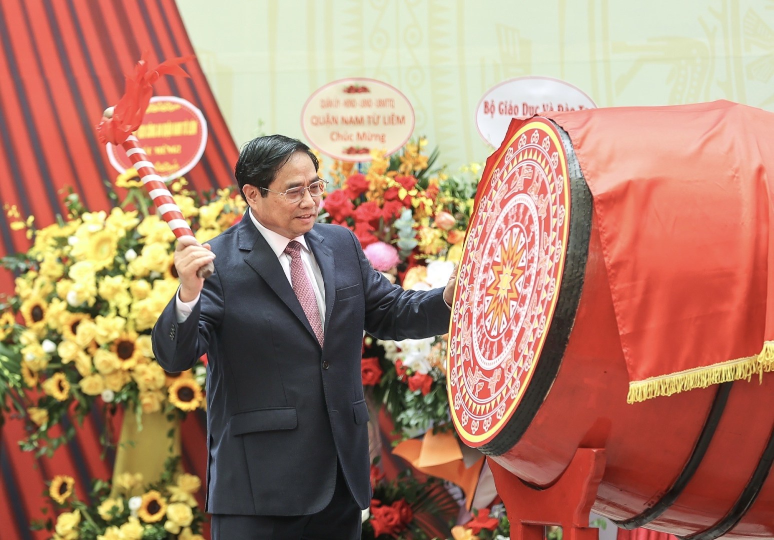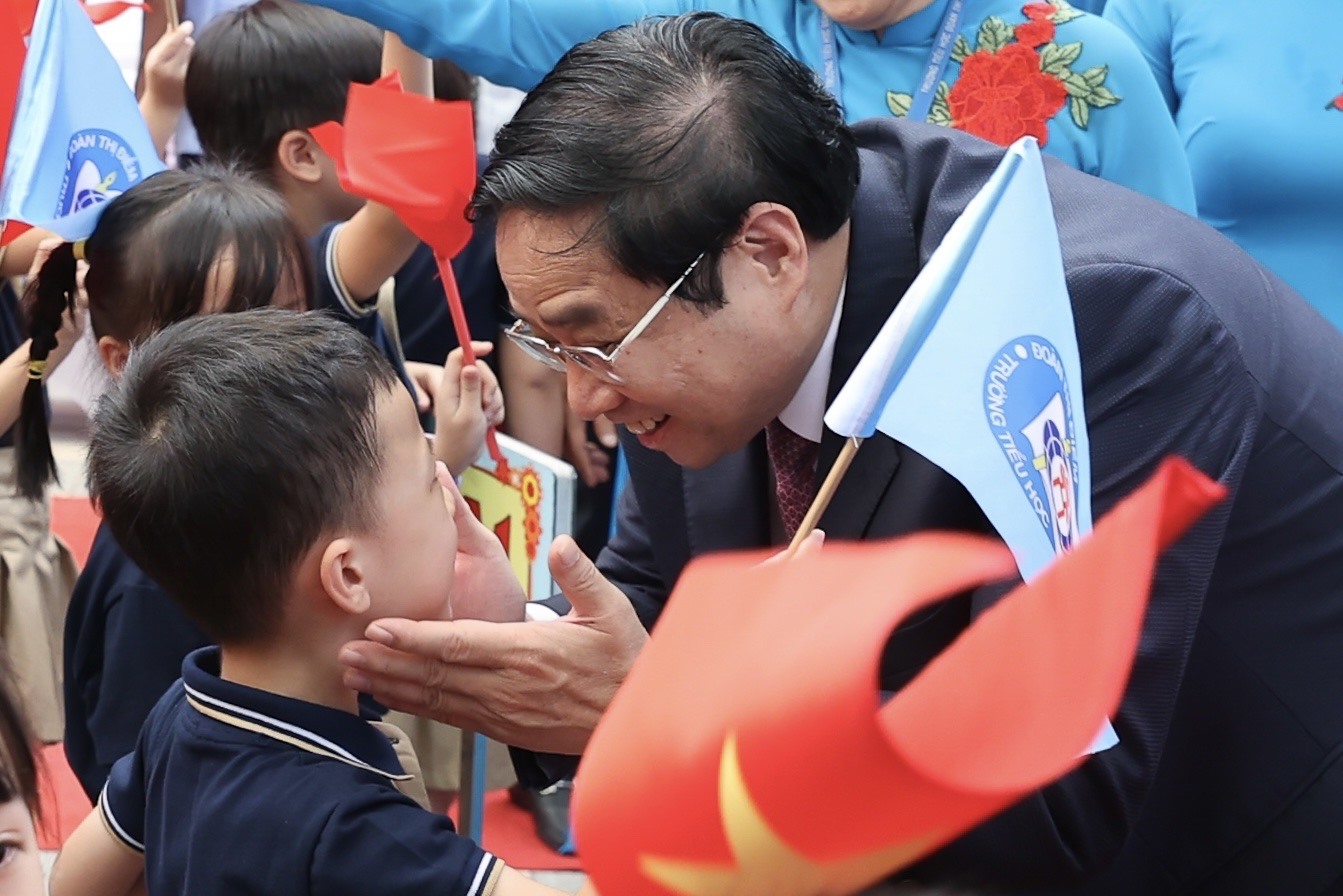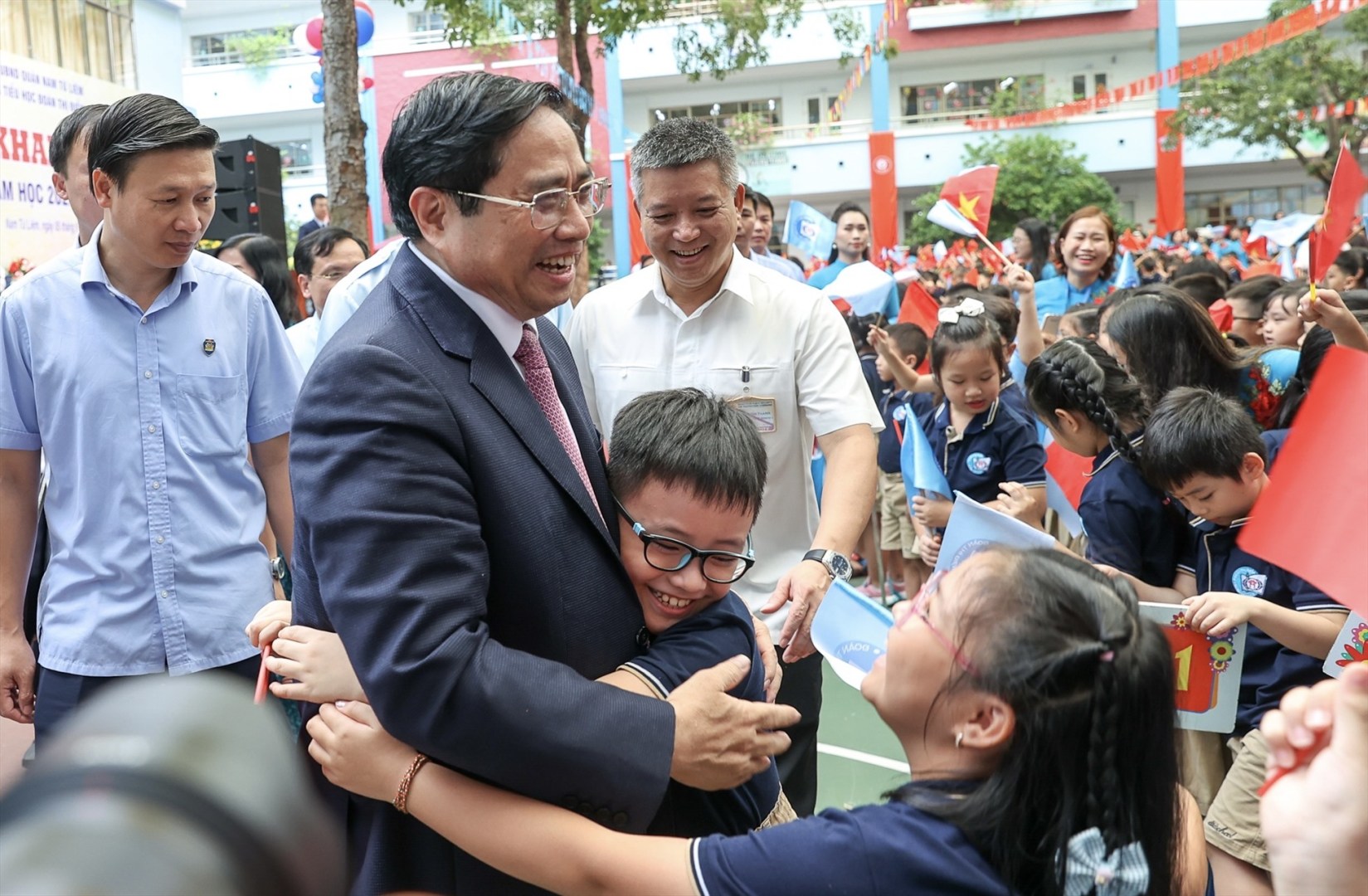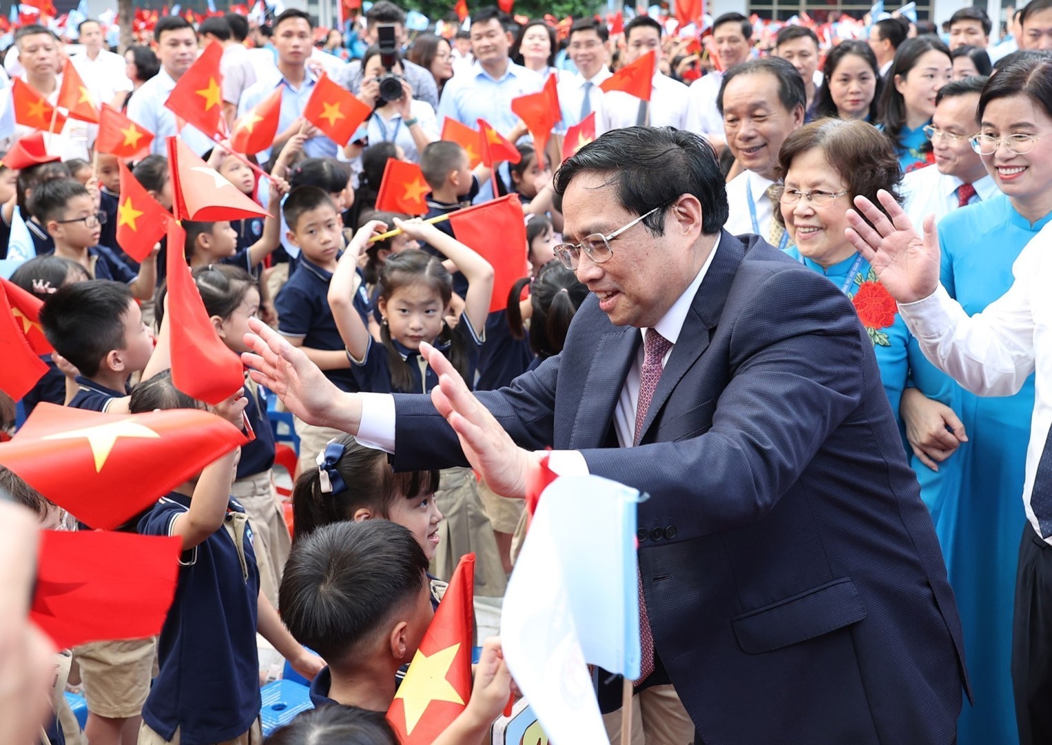 Série de fotos: O primeiro-ministro Pham Minh Chinh participa da cerimônia de inauguração de uma escola primária em Hanói. (Fonte: VNA)