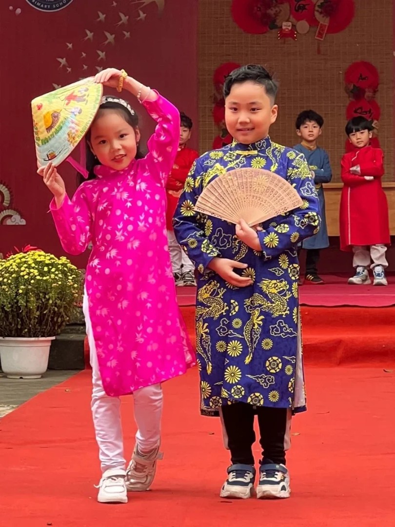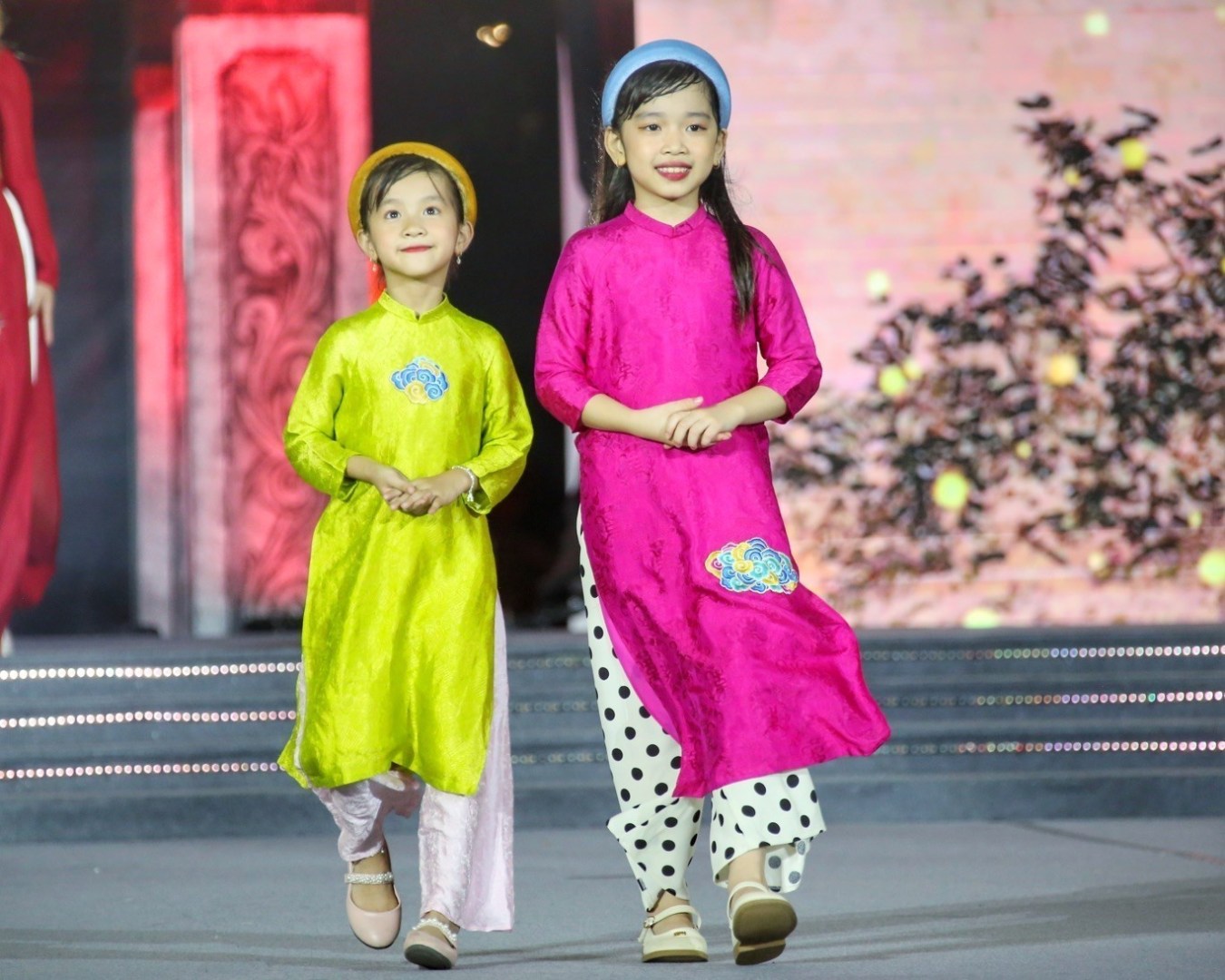 Crianças participam de um desfile de Ao dai (traje tradicional vietnamita). (Fonte: VNA)