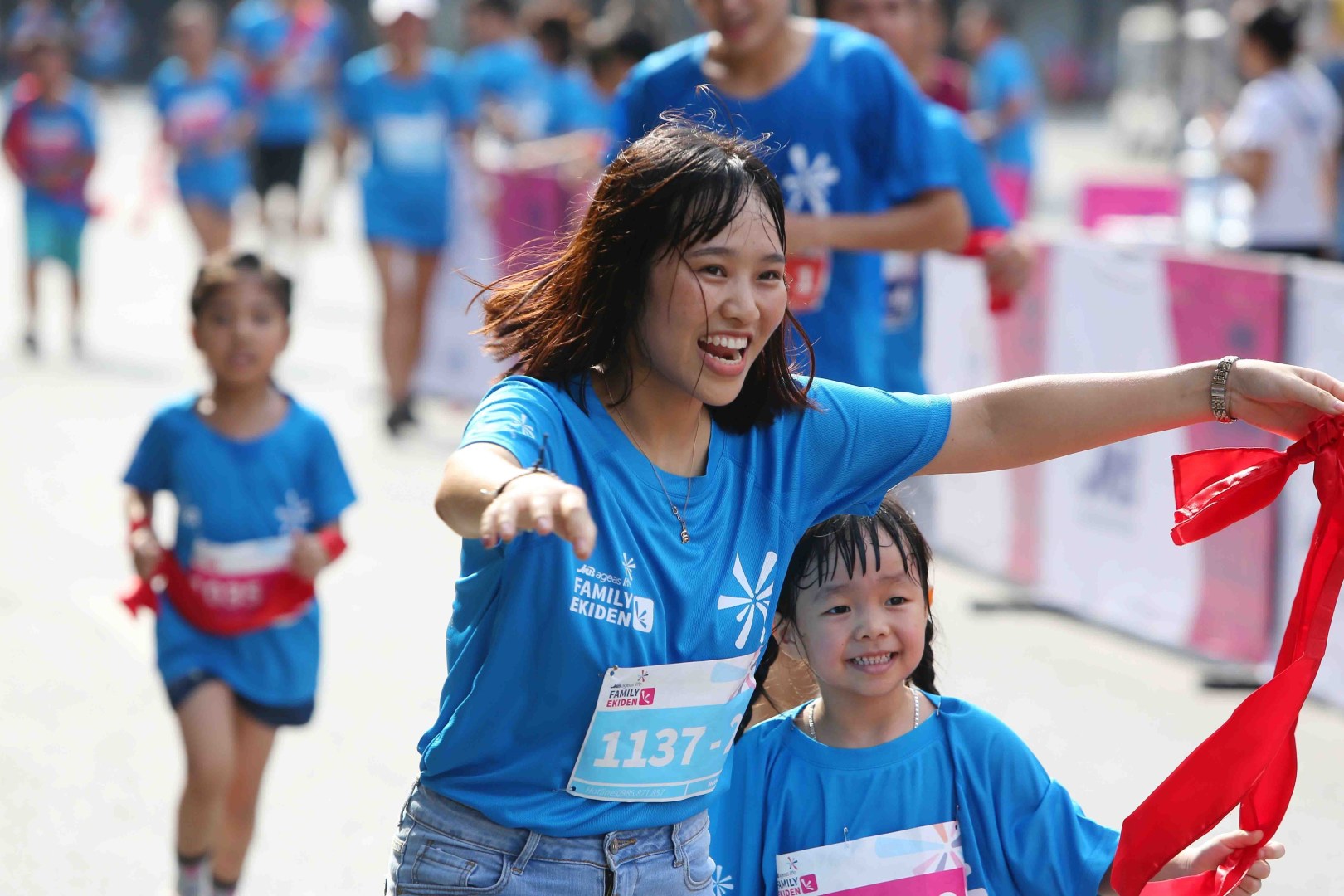 Mãe e filha participam de uma corrida para arrecadar fundos para crianças carentes. (Fonte: VNA)