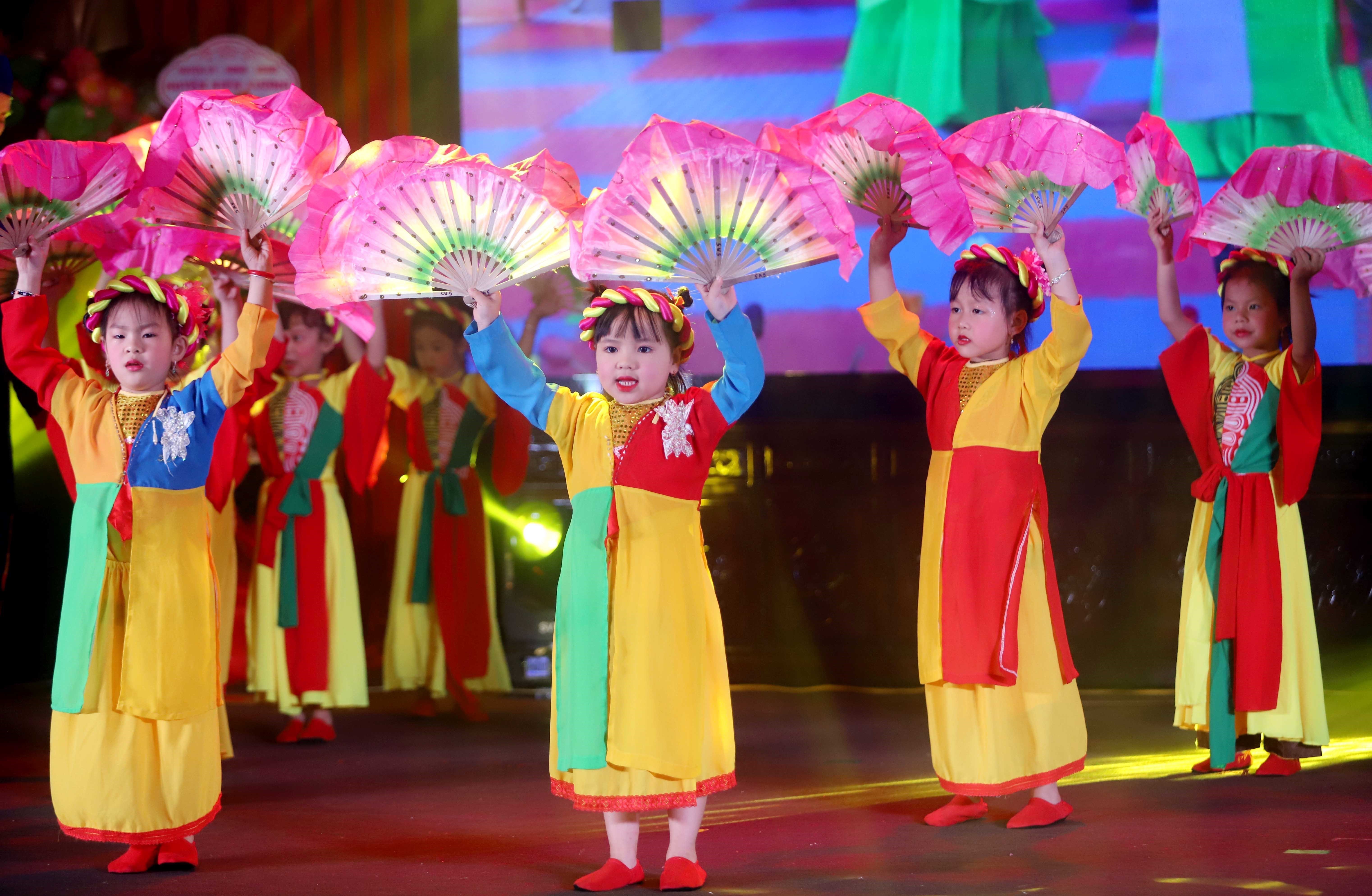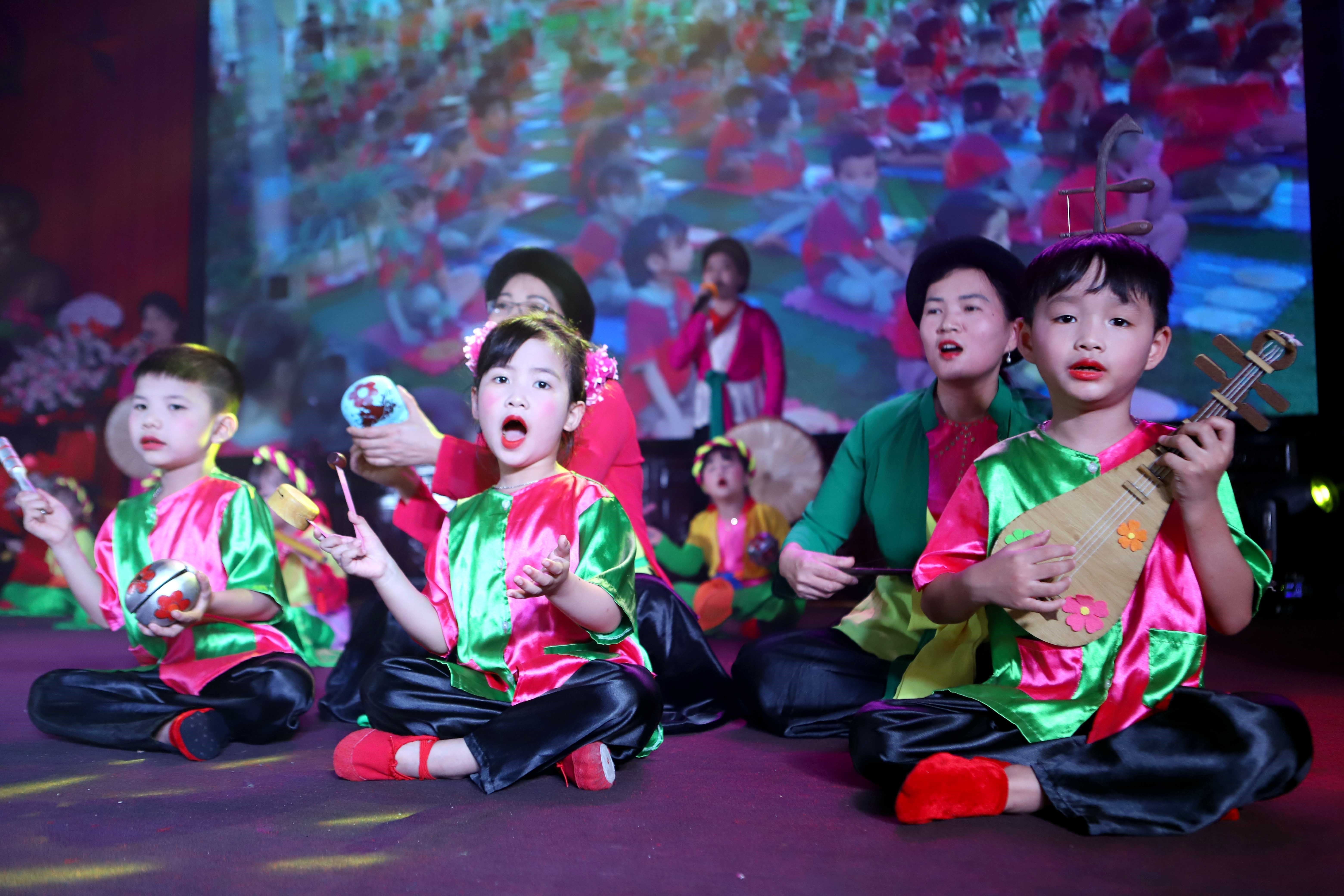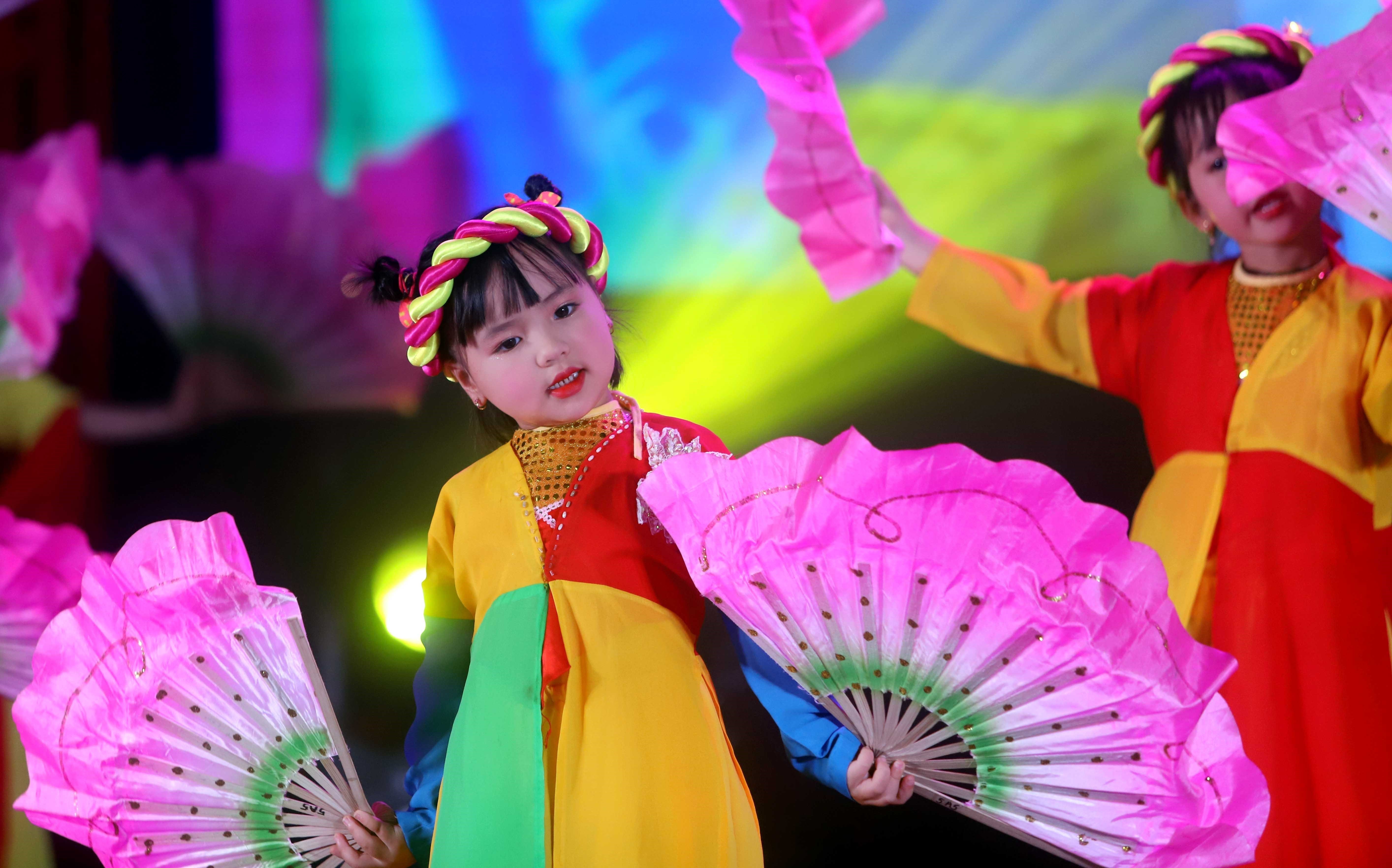 Série de fotos: alunos da pré-escola Thai Binh se familiarizam com a dança tradicional Cheo (uma arte teatral popular única). (Fonte: VNA)