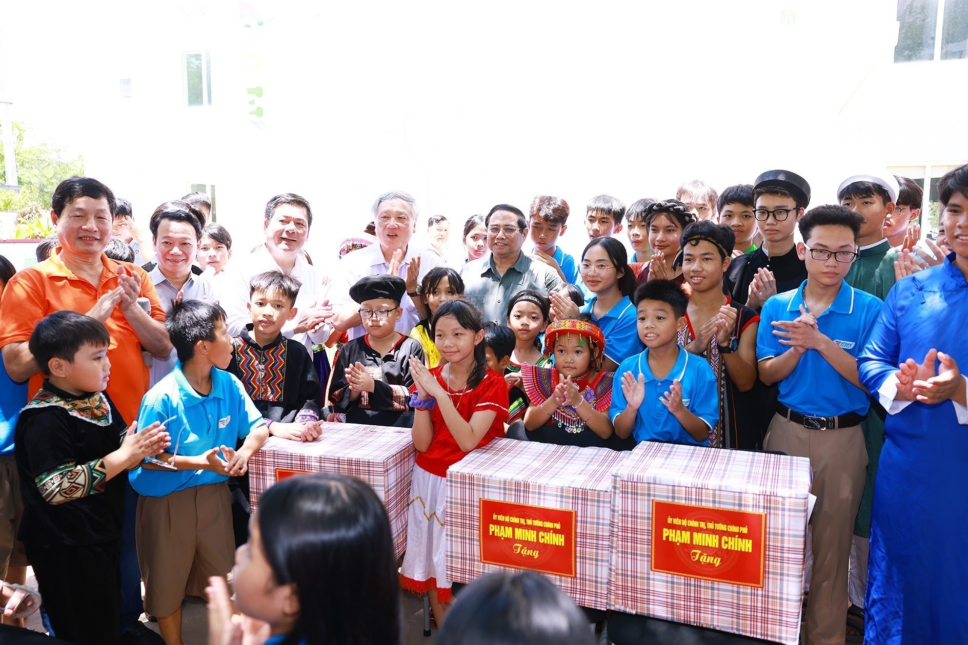 Série de fotos: O primeiro-ministro Pham Minh Chinh visita alunos e professores na Escola Hy Vong na cidade de Da Nang (setembro de 2024). (Fonte: VNA)