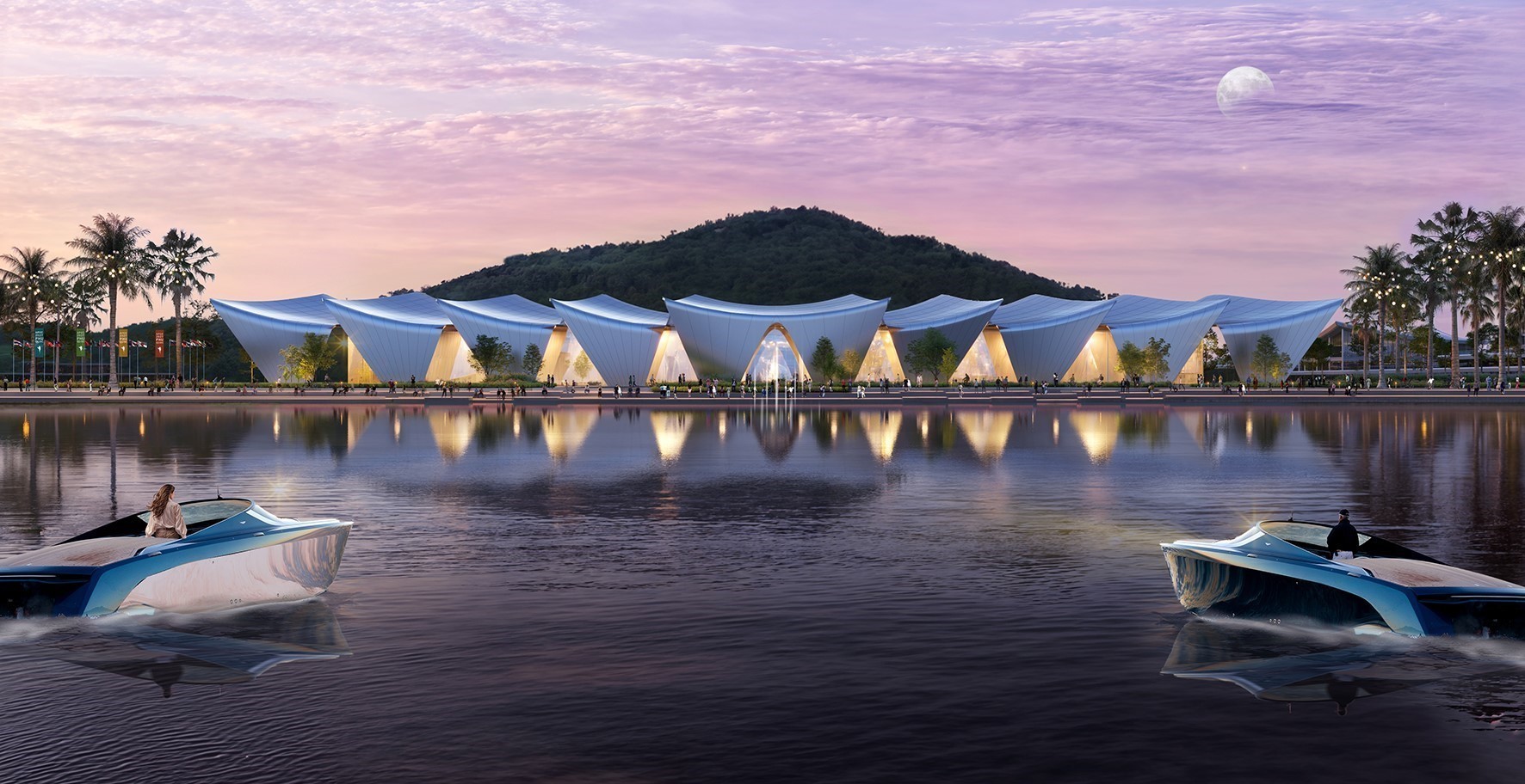 Visão geral do Centro de Conferências e Exposições que sediará a APEC 2027 em Phu Quoc. (Foto: VNA)
