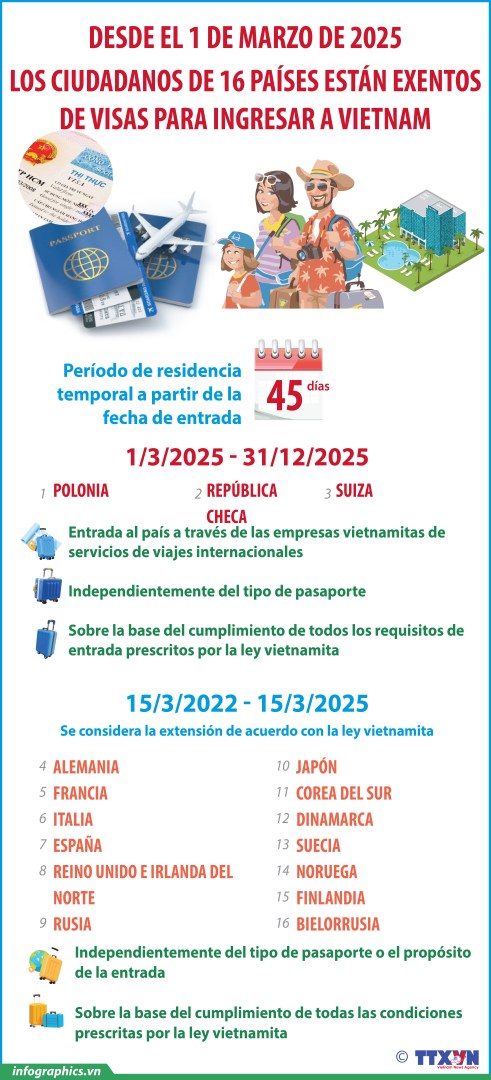 Em 7 de março de 2025, o governo vietnamita adotou a Resolução nº 44/NQ-CP, que oferece viagens sem visto para cidadãos de 12 países: Alemanha, França, Itália, Espanha, Reino Unido e Irlanda do Norte, Rússia, Japão, Coreia do Sul, Dinamarca, Suécia, Noruega e Finlândia.