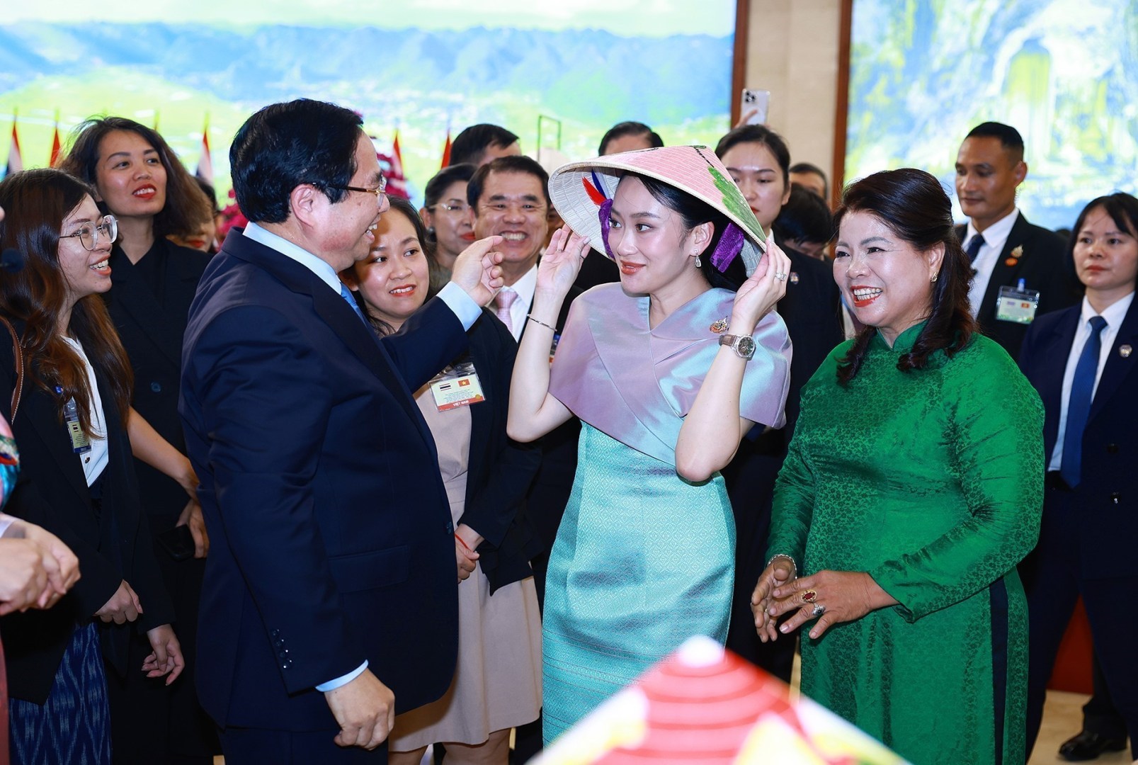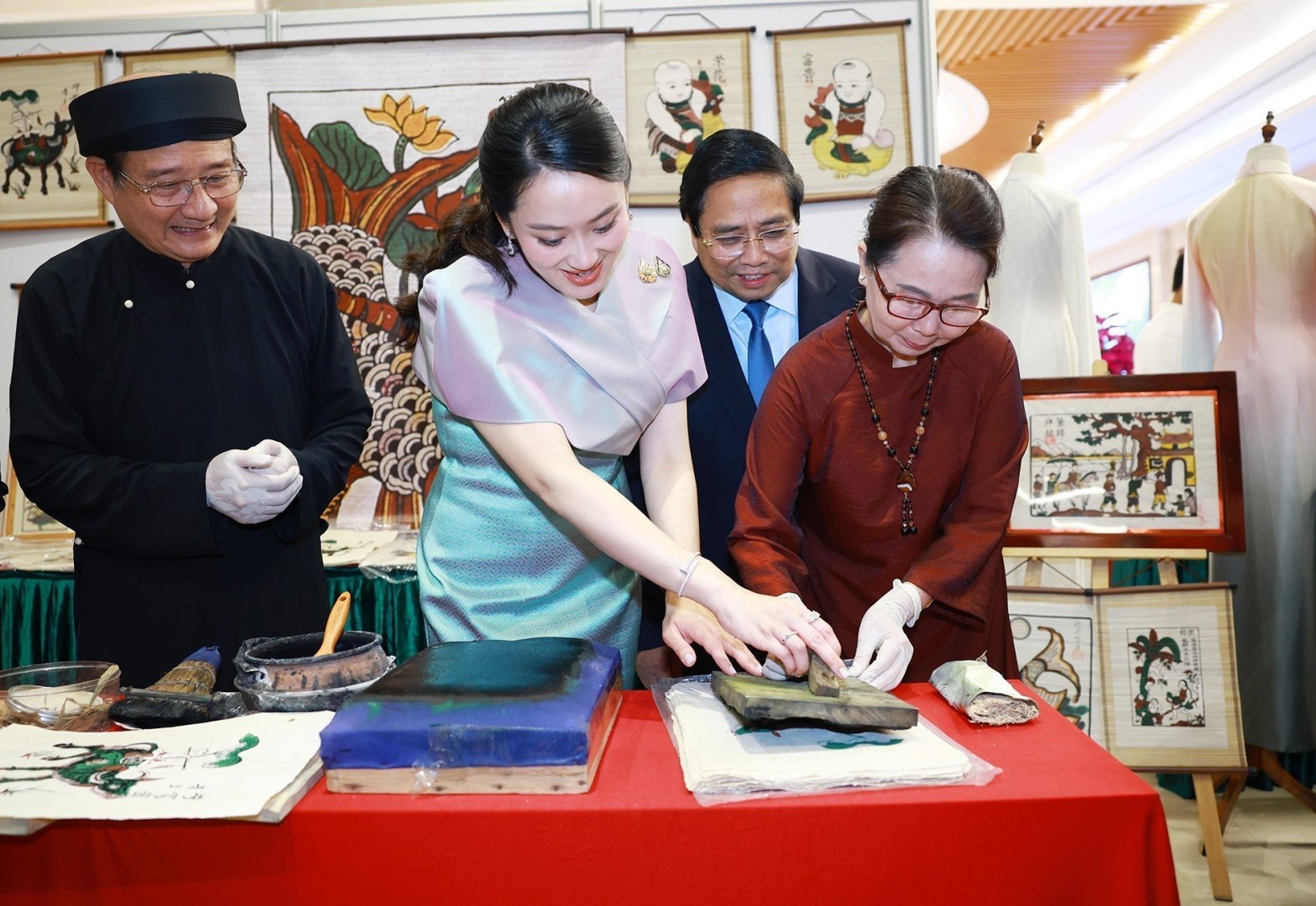 A Tailândia oferece atualmente isenções de visto para 98 países. Na foto: A primeira-ministra tailandesa, Paetongtarn Shinawatra, observa o artesanato tradicional vietnamita durante sua visita oficial ao Vietnã, nos dias 15 e 16 de maio, a convite de seu homólogo anfitrião, Pham Minh Chinh. (Fonte: VNA )