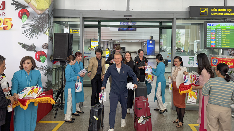 Da Nang entrega presentes de Ano Novo 2025 aos seus primeiros hóspedes internacionais. (Fonte: VNA )