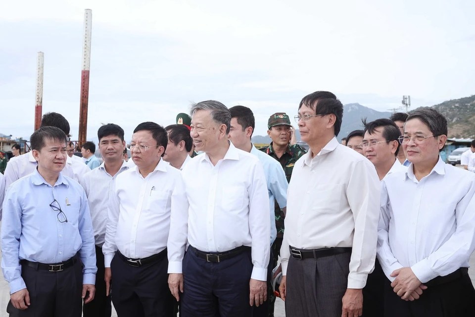 Em maio de 2024, o secretário-geral do Partido Comunista, To Lam, visitou o local onde será construída a usina nuclear Ninh Thuan 1 no distrito de Thuan Nam. (Foto: VNA)