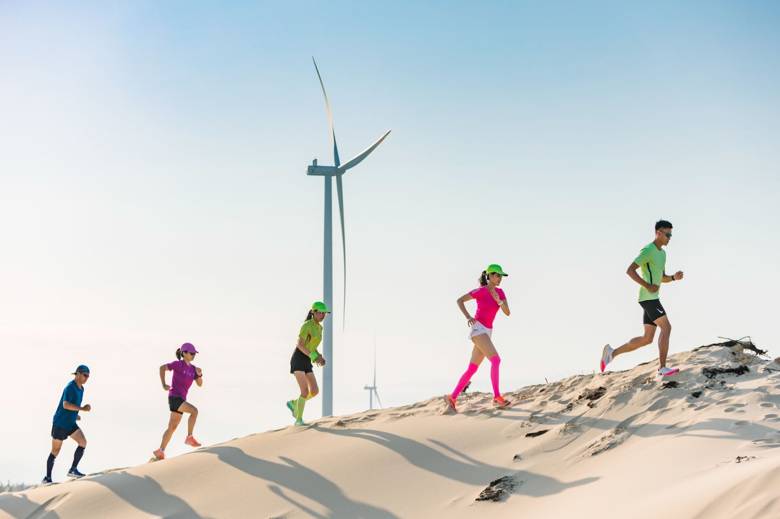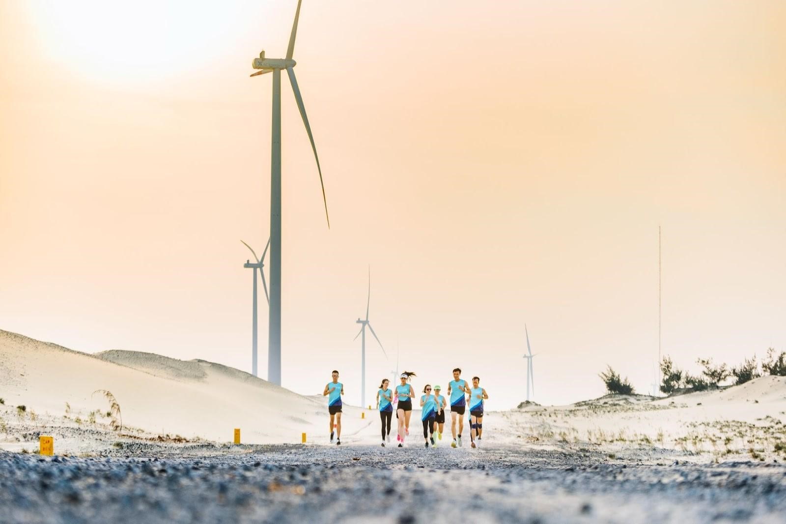 Loss corredores participam da Maratón Coteccons Quang Binh 2022 no complexo de parques eólicos B&T na província central de Quang Binh. (Foto: Comité organizador da Maratona Coteccons Quang Binh)