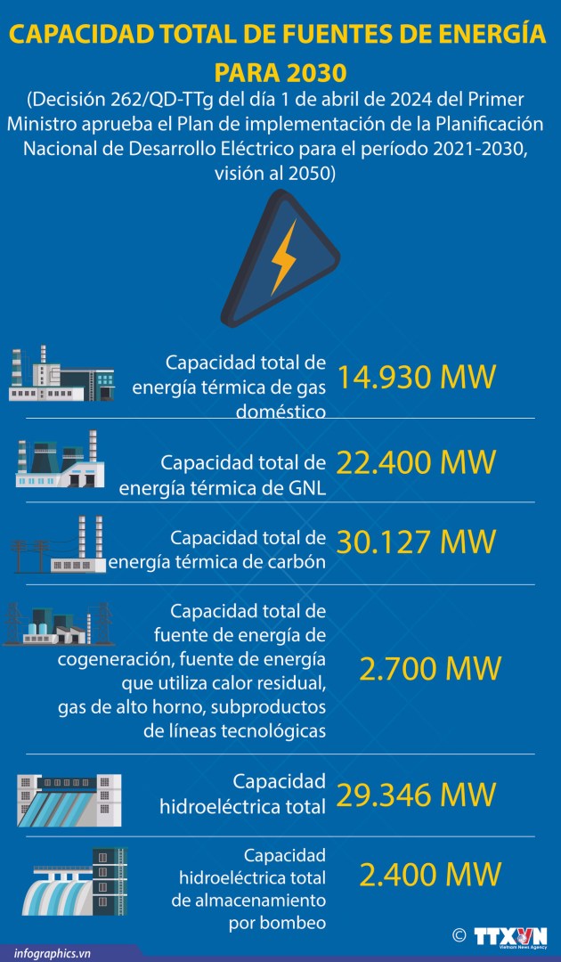De acordo com o Plano de Energia VIII, para 2030, a capacidade total de fontes de energia do Vietnã deve atingir aproximadamente 150 GW, o que significa que cada ano é necessário para o funcionamento de mais de 10 GW de novas fontes de energia. Para 2050, a capacidade total das centrais elétricas será de 490.529 a 573.129 GW.
